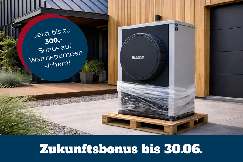 Clever heizen zahlt sich aus – besonders jetzt mit dem attraktiven Zukunftsbonus für innovative Wärmepumpen. Vom 01.01.2026 bis 30.06.2026 können Sie sich 300€ bei Buderus sichern und gleichzeitig eine Investition tätigen, die sich langfristig auszahlt.